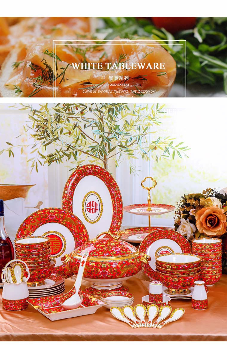 85頭琺瑯彩新娘餐具,一個湯煲,一個飯勺,一個魚盤,一個10.5寸平盤,一個10.5寸月光盤,雙層果盤一個,一個大煙缸,一個小煙缸,二個調(diào)料罐,一個牙簽筒,四個面碗,十個4.5寸飯碗,十個三寸調(diào)味碟,十個4寸湯碗,十個調(diào)羹,十個7寸骨碟,十個8寸盤,十個筷子架。