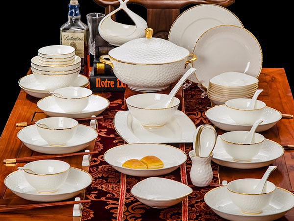 60頭水立方,一個湯煲,一個魚盤,一個十寸圓盤,一個飯勺,一個花籃,一個牙簽筒,四個面碗,十個4.5寸飯碗,十個三角骨碟,十個八寸盤,十個調(diào)羹,十個筷子架。