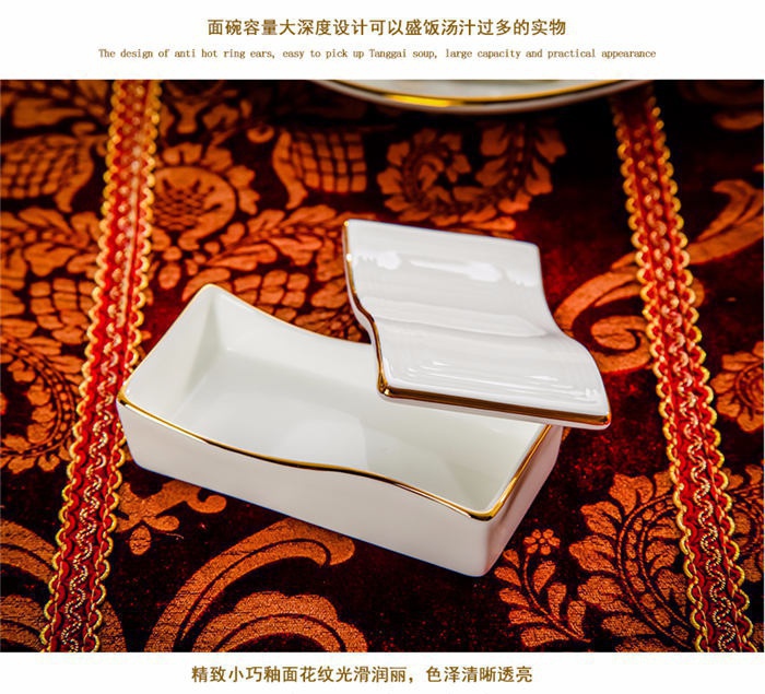 58頭頭金邊螺,一個湯煲,一個魚盤,一個十寸圓盤,一個飯勺,一個煙灰缸,一個牙簽筒,兩個面碗,十個4.5寸飯碗,十個五個五寸骨碟,十個八寸盤,十個調(diào)羹,十個筷子架。58頭頭金邊螺,一個湯煲,一個魚盤,一個十寸圓盤,一個飯勺,一個煙灰缸,一個牙簽筒,兩個面碗,十個4.5寸飯碗,十個五個五寸骨碟,十個八寸盤,十個調(diào)羹,十個筷子架。