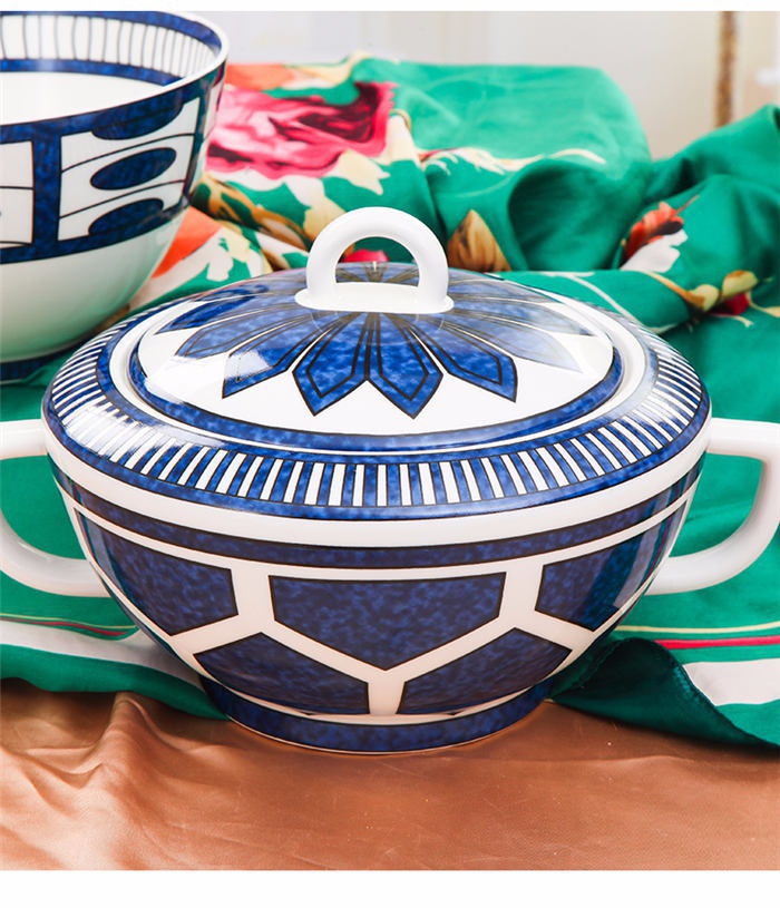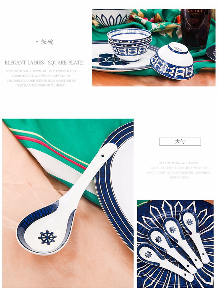 62頭蘭之印,一個湯煲,一個大湯碗,一個大飯勺,一個牙簽筒,一個煙灰缸,兩個面碗,兩個魚盤,一個14寸圓盤,兩個10寸圓盤,十個8寸盤,十個4.5寸飯碗,十個5寸骨碟,十個小湯勺,十個筷子架。