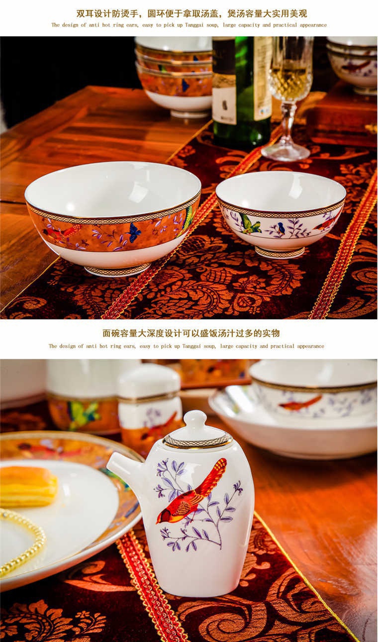 78頭愛丁堡餐具,一個(gè)湯煲,一個(gè)魚盤,一個(gè)十寸盤,一個(gè)飯勺,一個(gè)花籃,兩個(gè)醋料壺,一個(gè)牙簽筒,雙層果盤一個(gè),十個(gè)4.5寸的碗,十個(gè)調(diào)羹,十個(gè)筷子架,六個(gè)8寸盤,兩個(gè)9寸盤,六個(gè)面碗,四個(gè)碗蓋,一打筷子,另外咖啡具有六個(gè)杯子,六個(gè)碟子,一個(gè)壺,一個(gè)糖缸,一個(gè)奶罐。